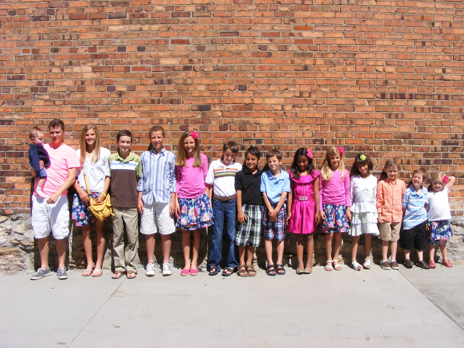 We had a wonderful Easter with Baron's family. We all went to church together. This is my favorite cousin picture: ages 4, 5, 6, 7, 7, 8, 9, 9, 11, 11, 13, 13, 15, 17, and 8 months!